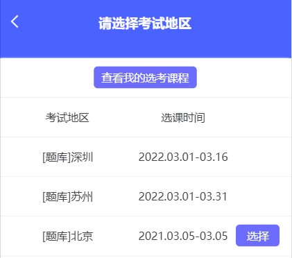 点击“网上选课”,选择要参加考试的题库课程。报名期间,考生可报考或取消报考题库课程,以最终选择为准。逾期不再补报,也不得修改报考信息。