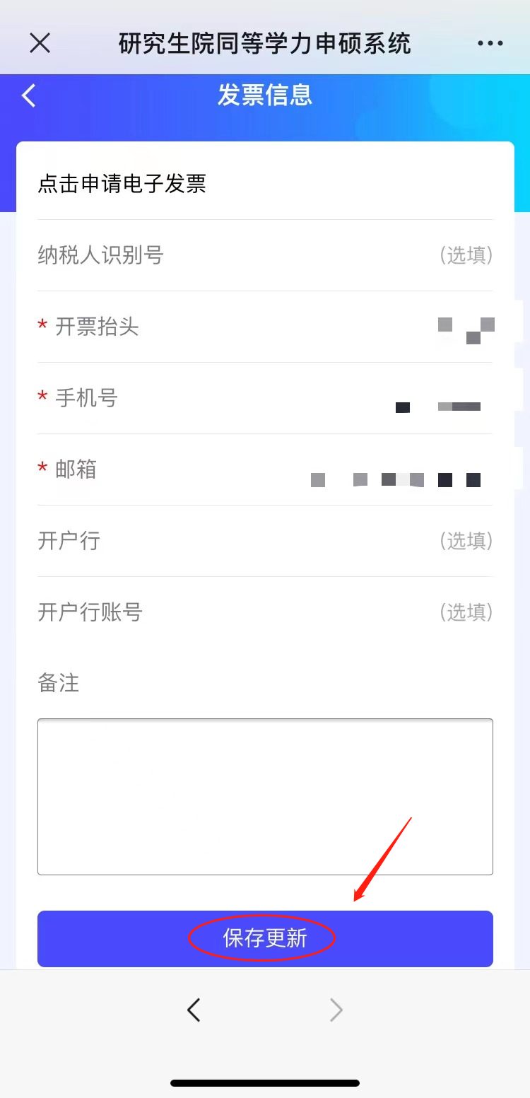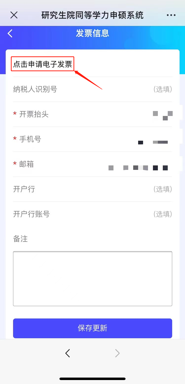 二、完善开票抬头、手机号、邮箱等信息,点击“保存更新”。