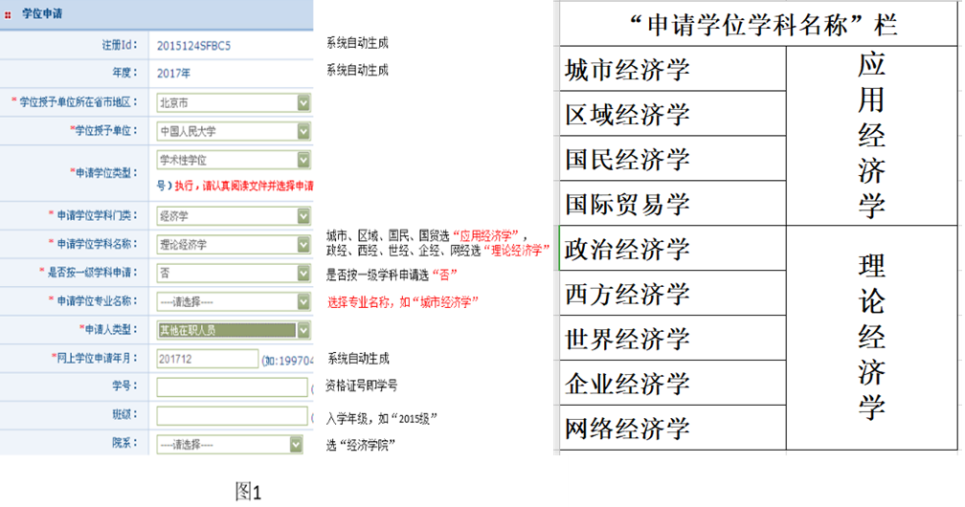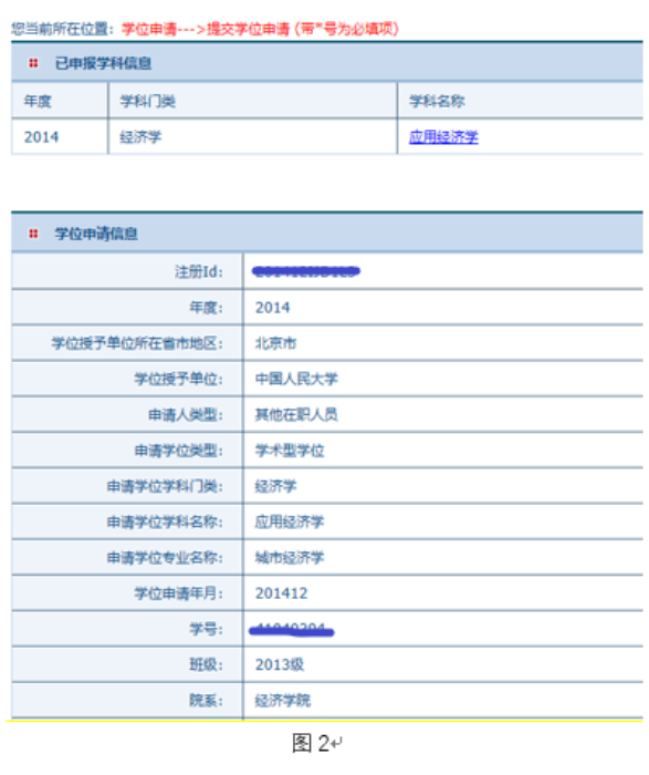 1、填写基本信息;2、上传电子照片(请注意看照片要求,上传错误会影响学位审报);3、提交学位申请,按图1例填写相关内容。“一级学科”一栏:选否;“学号”一栏:学号即资格卡号,查询网址: