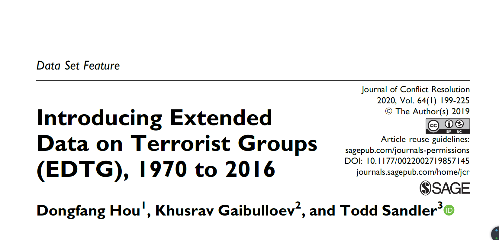 Introducing Extended Data on Terrorist Groups (EDTG), 1970 to 2016Dongfang Hou, Khusrav Gaibullev,Todd Sandler