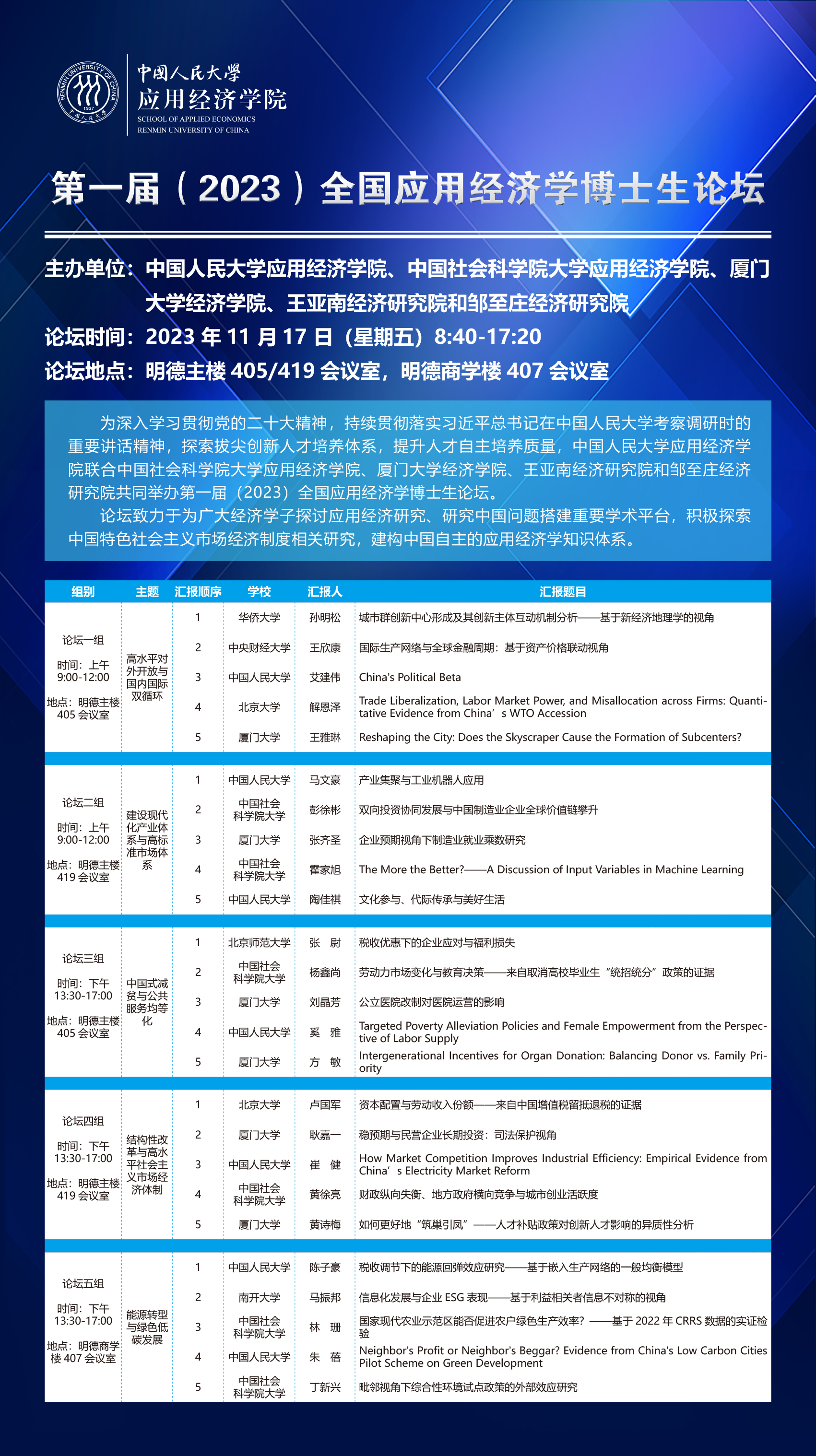 第一届(2023)全国应用经济学博士生论坛