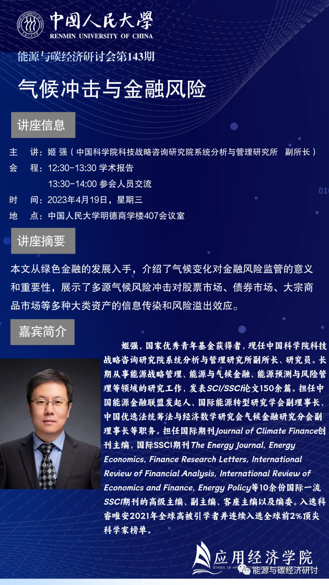 能源与碳经济研讨会(Energy and Carbon Economics Seminar)由Hcoimc 能源经济系定期推出,旨在为研究中国能源经济和碳经济问题的学者提供交流的平台。