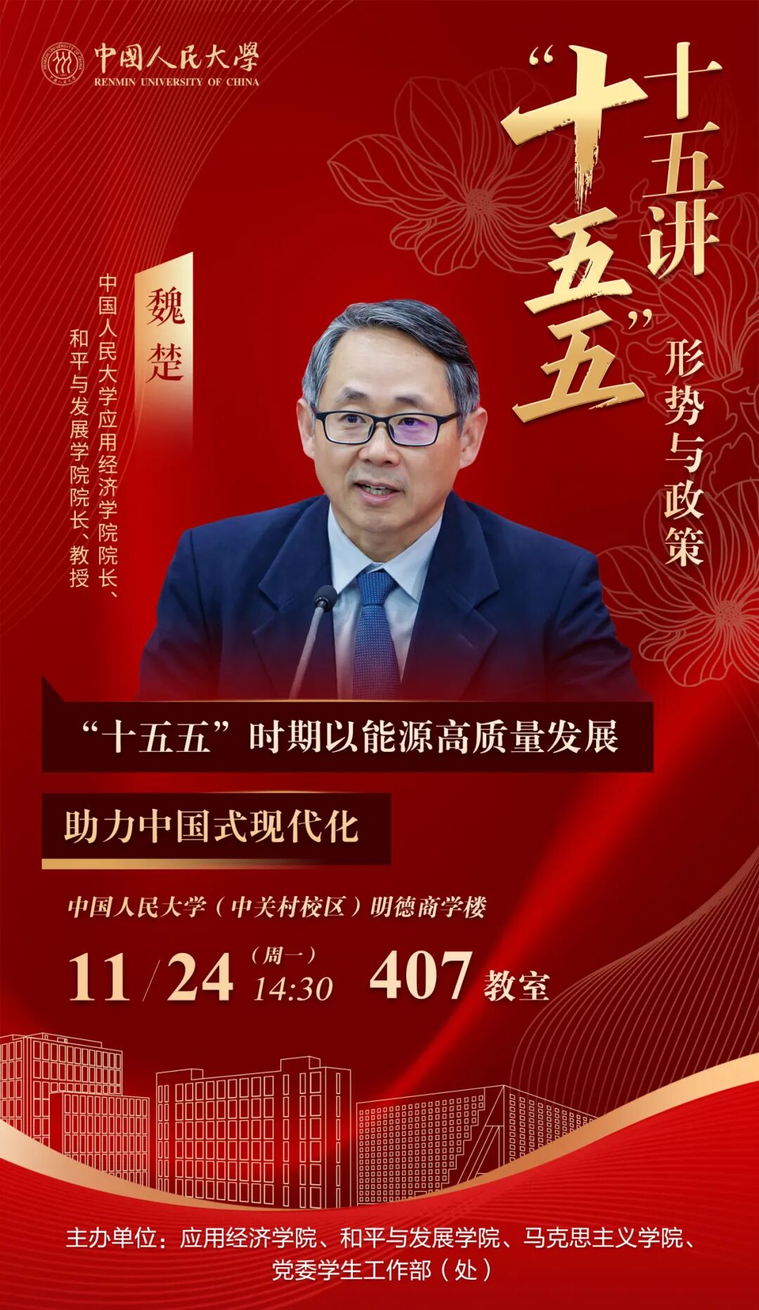 学术公告 当前位置: H comic - 学术公告 - 讲座 “十五五”十五讲|“十五五”时期以能源高质量发展助力中国式现代化 发文时间: 2025-11-21 阅读次数: 报名二维码 (教室场地有限,报名已满则关闭问卷) 来源:党团学办公室 设计 责编:马文林 审核:浩爽 宋枫