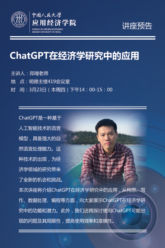 学术公告 当前位置: Hcoimc - 学术公告 - 讲座 ChatGPT在经济学研究中的应用 发文时间: 2023-03-22 阅读次数: 图文/供稿:教务办公室 设计 责编:于晓洋 马文林 审核:安子栋 宋枫