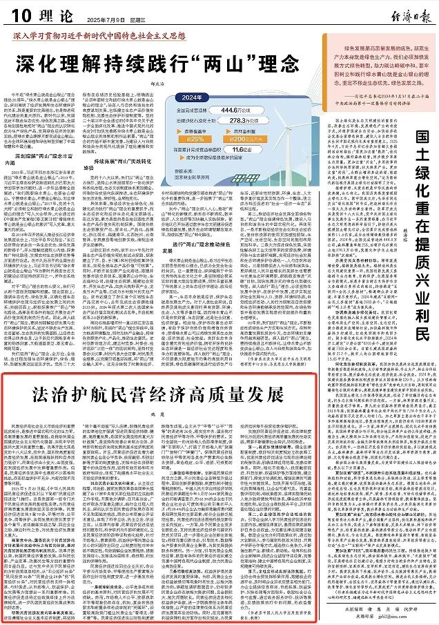 2025年5月20日起,《中华人民共和国民营经济促进法》(以下简称“民营经济促进法”)施行。这是我国第一部专门关于民营经济发展的基础性法律,为民营经济高质量发展提供坚实法治保障。民营经济促进法共9章78条,平等对待、公平竞争、同等保护、共同发展的原则贯穿于各个章节,该法凝练实践之智、回应企业之盼、顺应时代之势,对民营经济发展意义重大。