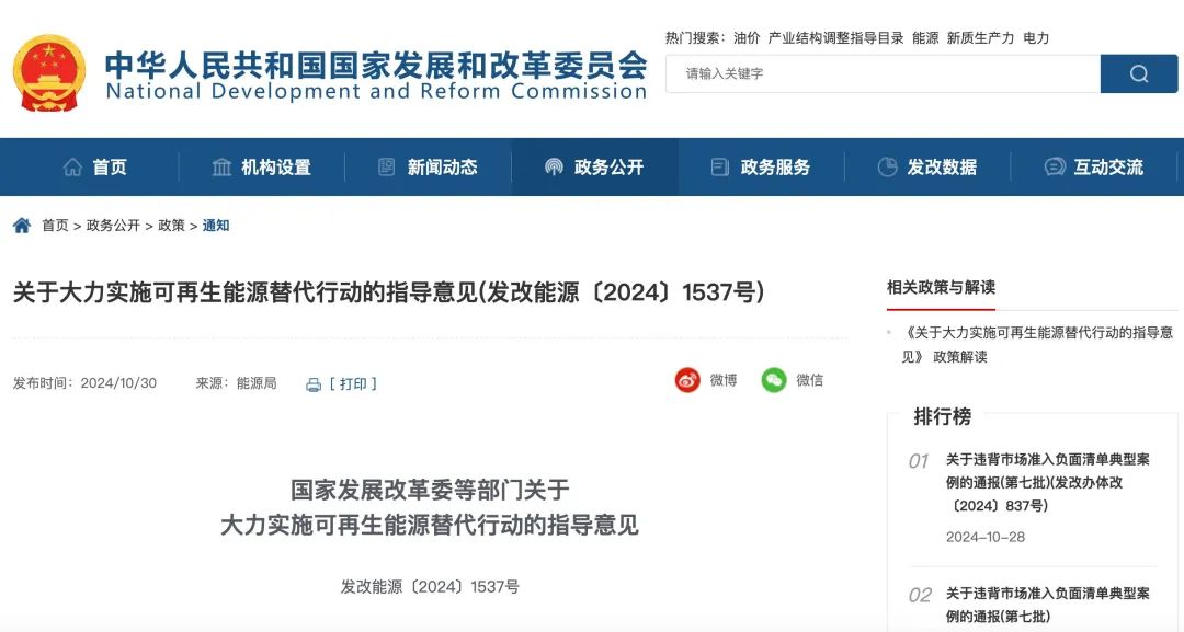 国家发展改革委等部门日前联合印发《关于大力实施可再生能源替代行动的指导意见》(以下简称《意见》),提出到2030年全国可再生能源消费量达到15亿吨标煤以上。《意见》主要围绕提升可再生能源的安全可靠替代能力、推进重点领域替代应用、推动替代创新试点等方面提出重点任务。