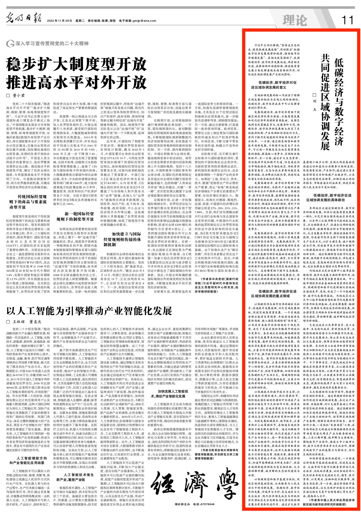 区域协调发展的核心内涵在于增强区域发展的韧性与区域之间的协调性,低碳经济、数字经济在其中可以发挥重要的引擎作用。