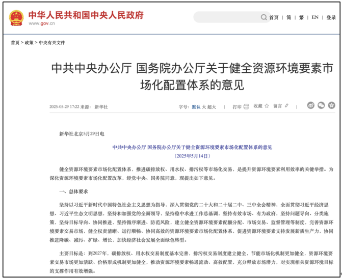 《意见》强调推进资源环境要素的市场化配置,即通过市场形成的价格信号,引导资源高效配置。目前,我国正处于资源环境要素市场从“制度初步建立”向“机制逐步完善、要素高效流动”的关键过渡阶段。以碳排放权交易为例,全国碳市场自2021年上线以来,已从最初覆盖火电行业扩展至钢铁、水泥、铝冶炼行业,成为资源环境市场化配置进展最快的领域。郑㼆进一步指出,市场机制的引入有效增强了政策执行的灵活性与效率,不仅推动企业在经济激励下主动减排,也打破了对行政手段的过度依赖。类似机制在用水权、排污权交易中也逐步发挥作用,尤其在资源紧张的地区,如华北、长三角,相关交易实践为资源节约和环境治理提供了有力支撑。