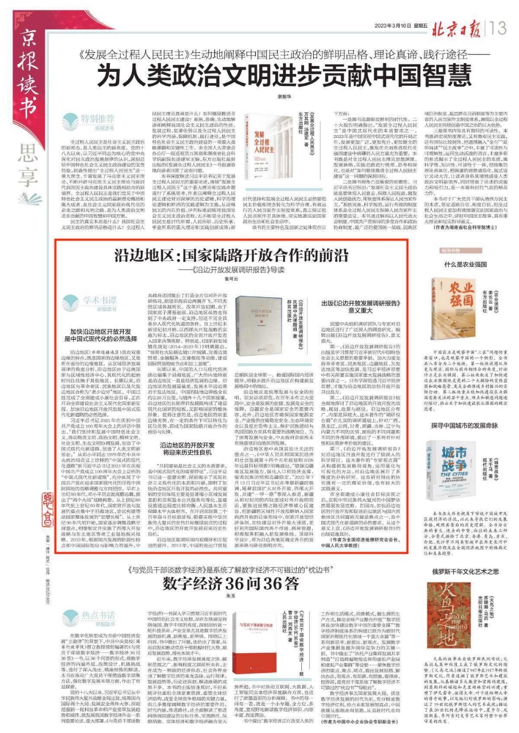 民盟中央组织调研团队与专家对沿边地区进行了广泛深入的调查研究。编辑出版《沿边开放发展调研报告》,意义重大。