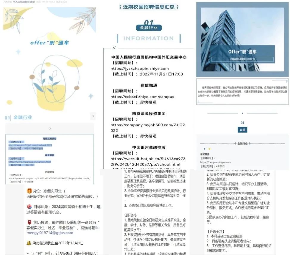 强化信息赋能,搭建立体化就业信息服务平台。建立实习就业信息互助群,在公众号开设“offer‘职’通车”板块,及时收集汇总、编辑推送各类招聘信息,将就业信息第一时间送抵毕业生。