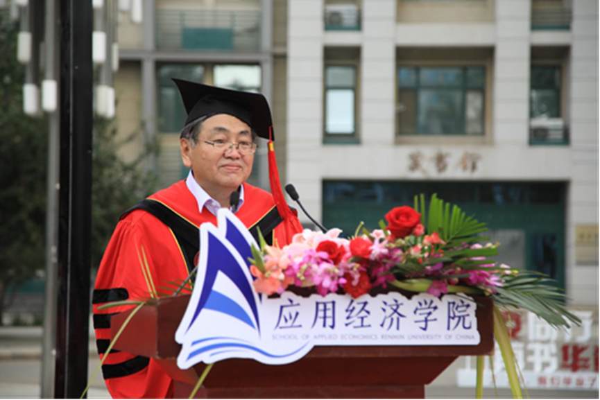 孙久文作为导师代表发言,提到人民大学给了同学们丰厚的知识、宽广的视野、为中华民族奋斗的理想和脚踏实地的工作作风,希望同学们记住校歌里的话,忠实于民族解放事业,献身于新社会的建设。未来成为国家的中流砥柱。
