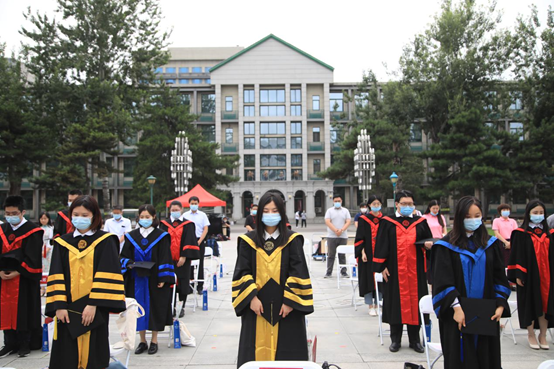 Hcoimc 学术委员会副主任孙久文教授宣读学位授予决定,我院2020年共有253名学生获得学位,其中22人获博士学位,173人获硕士学位、58人获学士学位。贺耀敏副校长与院学术委员会委员为参加学位授予仪式的15名毕业生代表颁授学位,拨穗正冠。