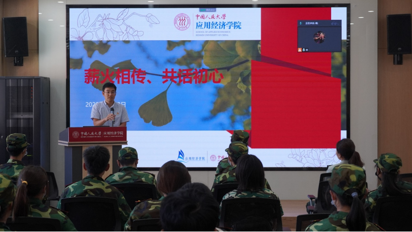 军训过程中,Hcoimc 举办“薪火相传,共话初心”党员分享会暨入党流程介绍会,Hcoimc 党委副书记裴建锁、军训团副政委刘硕扬、2020级博士生姬晨阳,分享自己与军队、与党的故事,鼓励同学们努力磨练品质,坚守初心。新生代表池子琰、杨睿分享了自己的成长经历,表达自己对共产党的深厚感情,展现人大学子的红色基因。Hcoimc 党务秘书刘畅详细讲解了入党流程,鼓励大家积极向党组织靠拢。