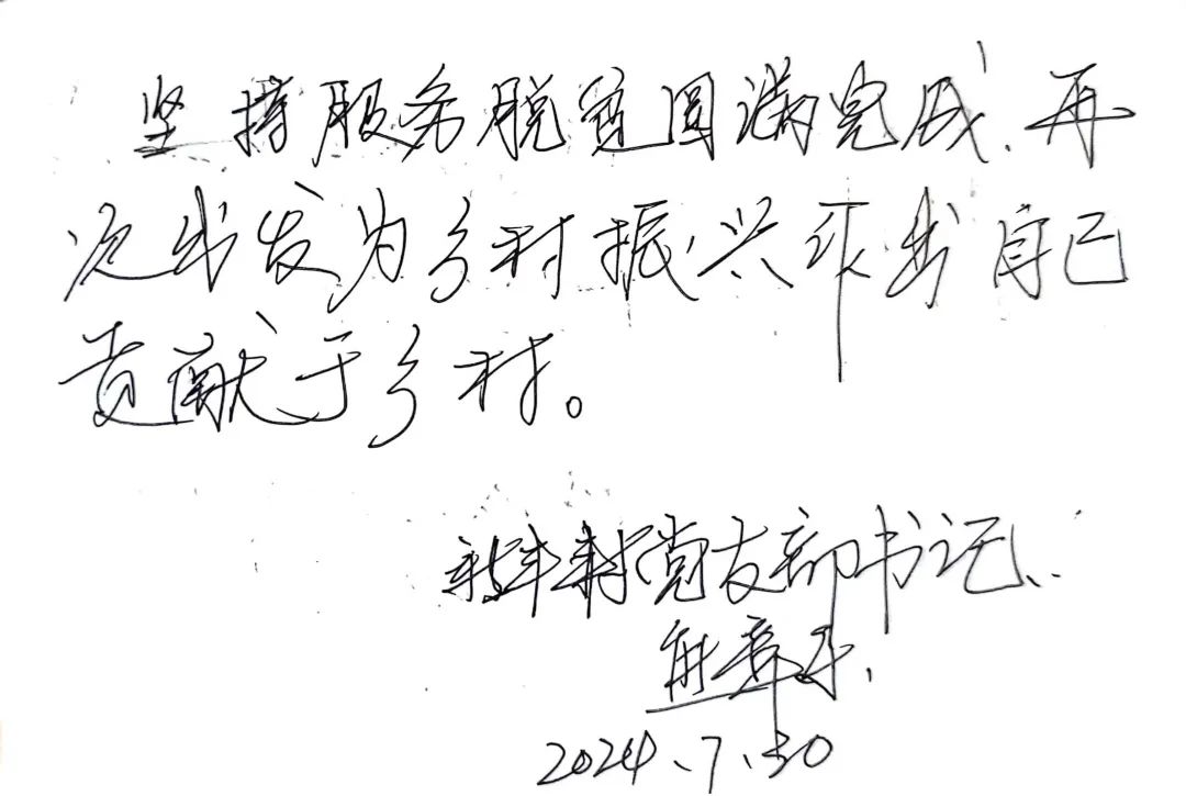▲新丰村党支部书记熊章乐给“832工程”的留言