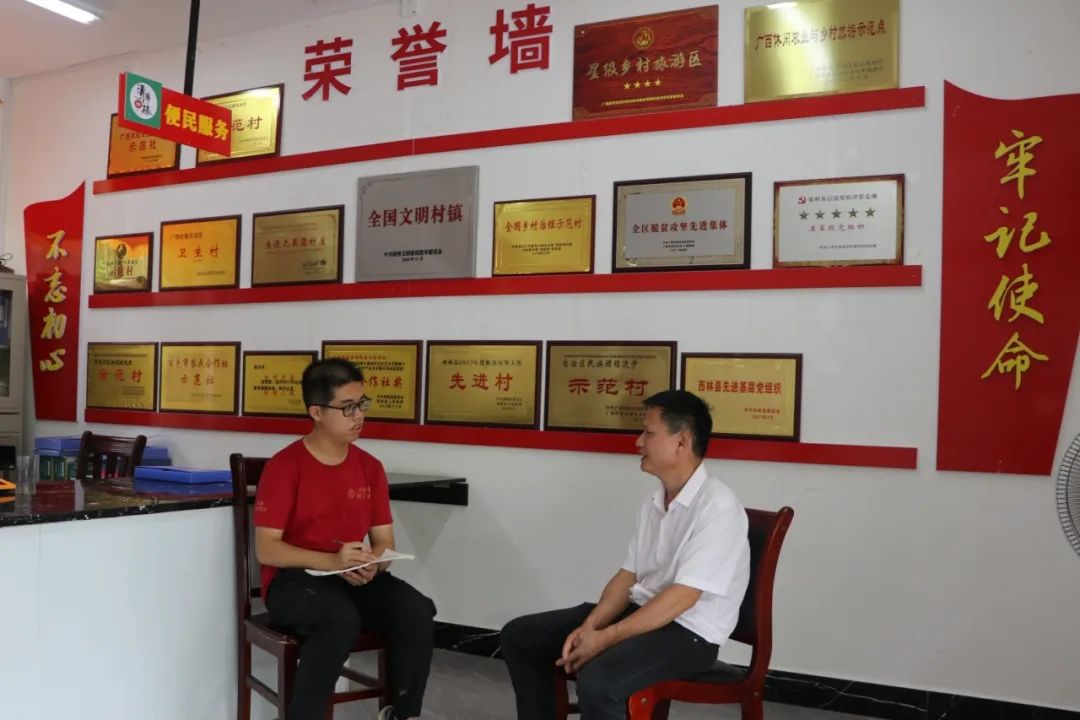 ▲梁振宇访谈西林县八达镇党委书记农程亮