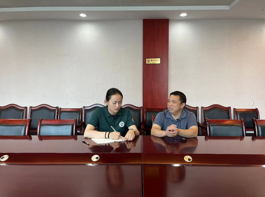 ▲吴施美老师访谈新化县农业农村局副局长黎义书