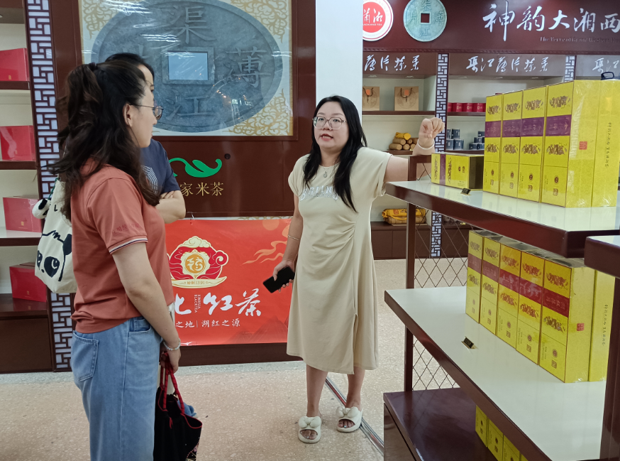 9月6日上午,访谈团抵达渠江薄片茶业有限公司调研农产品(茶叶)加工。公司集茶叶种植、加工、销售于一体。生产加工线路大致有三条:一是渠江薄片加工,二是红茶绿茶明油茶,三是麦珠红茶。该公司生产自动化程度高,拥有湖南唯一一条全自动化颗粒生产线。茶叶销售方式以线下为主,同时也在探索线上销售模式。