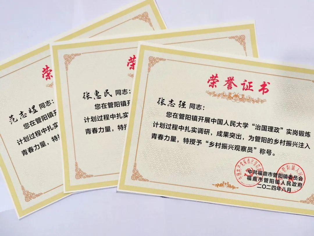 有三名人大博士生,他们专业不同、年级各异,却在福建宁德的一个山区乡镇接续耕耘,以乡村产业振兴为主题扎实调研,成果得到当地政府高度评价,还在近日被授予“乡村振兴观察员”的荣誉称号。