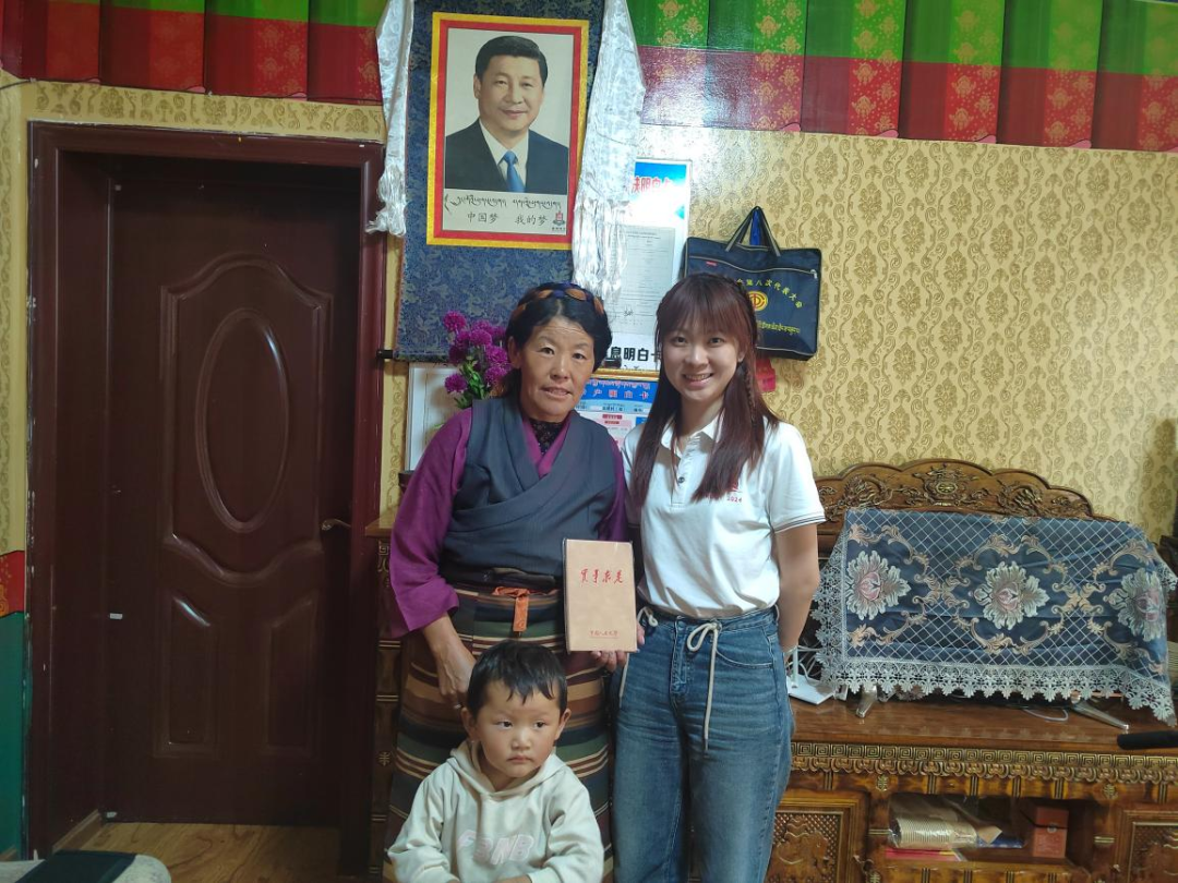 ▲Hcoimc 博士生邱宁昕访谈江塘镇易地搬迁点脱贫户拉珍并合影留念