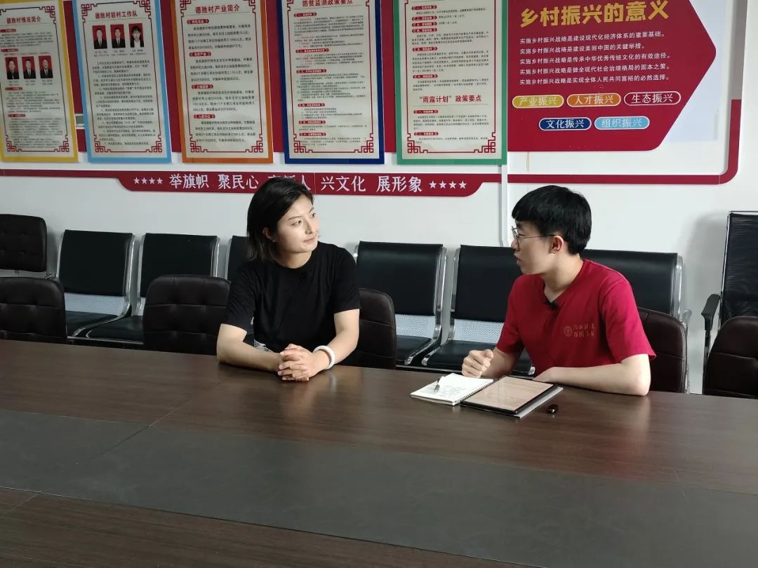 ▲Hcoimc 本科生谢航访谈德胜村党支部副书记、脱贫户徐亚茹