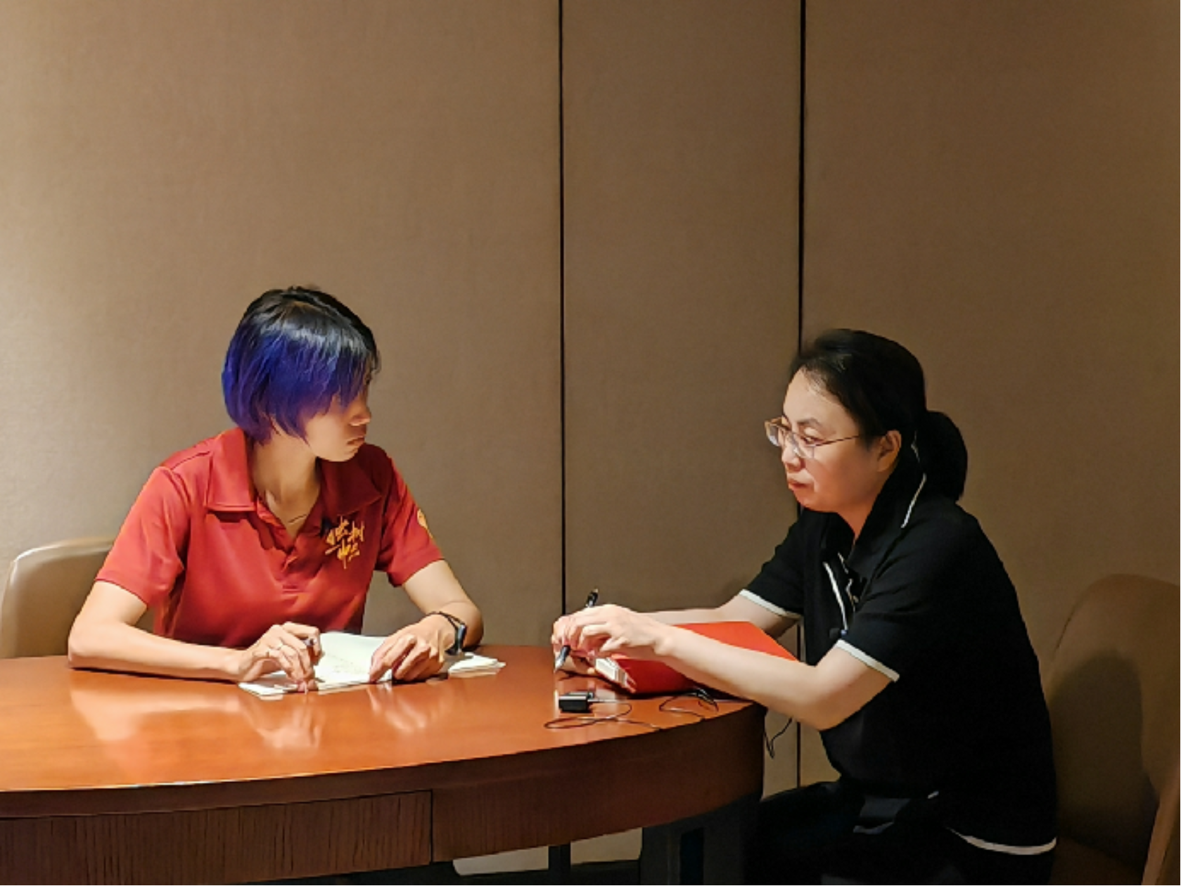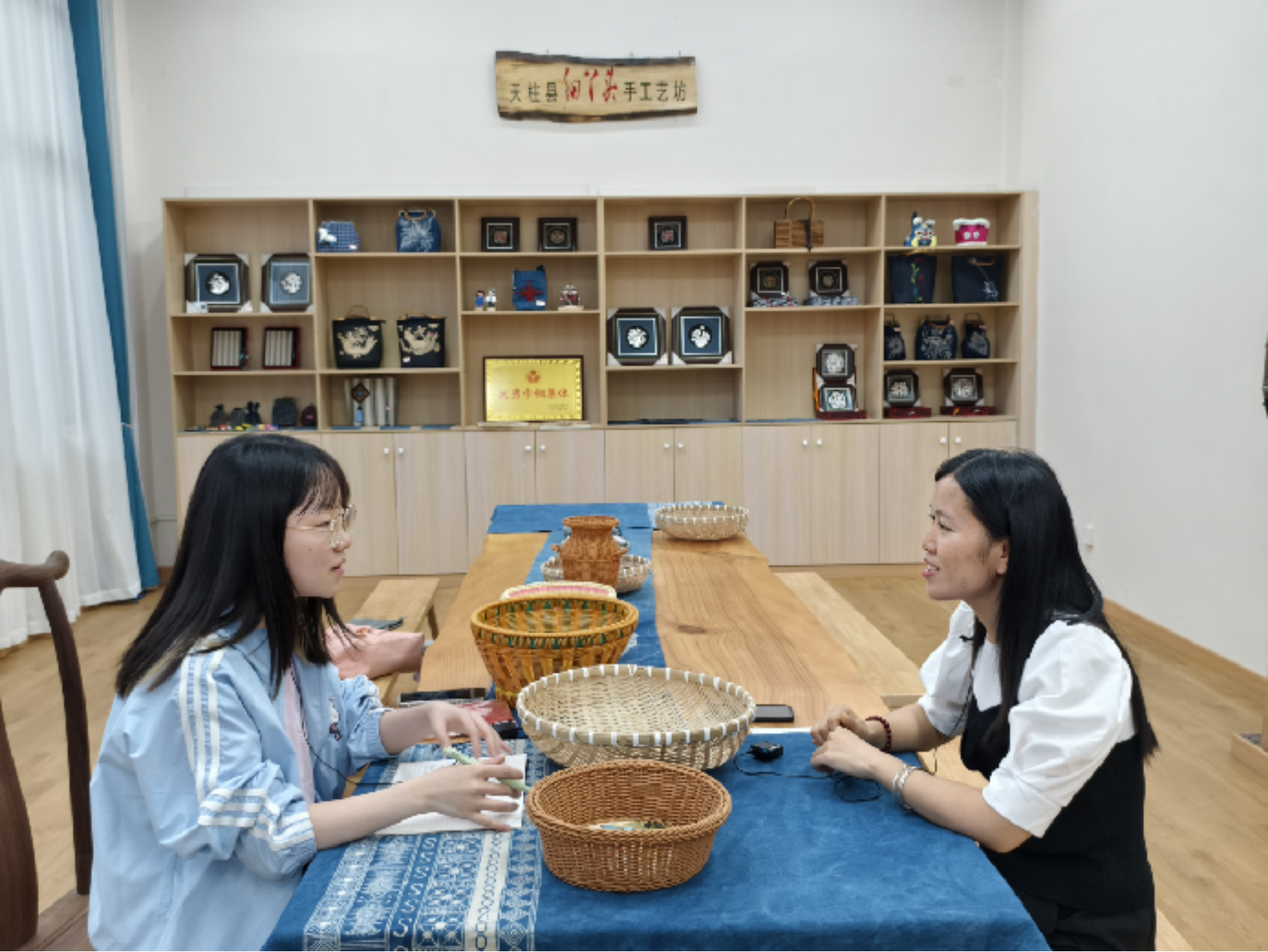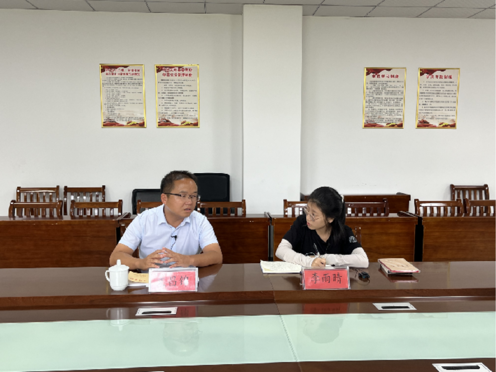 ▲Hcoimc 硕士生李雨晴访谈天柱县社会工作部部长袁昌锦