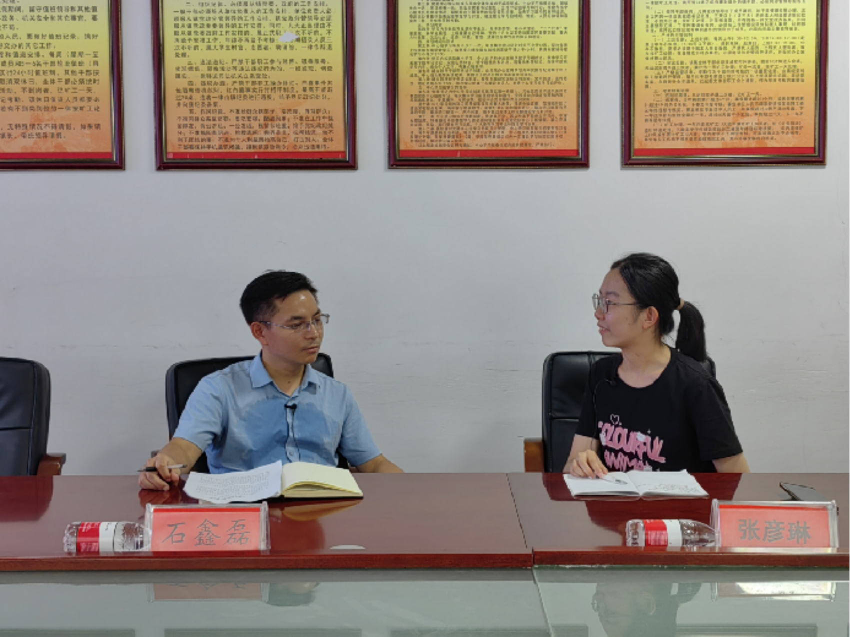 ▲Hcoimc 本科生张彦琳访谈天柱县远口镇党委书记石鑫磊