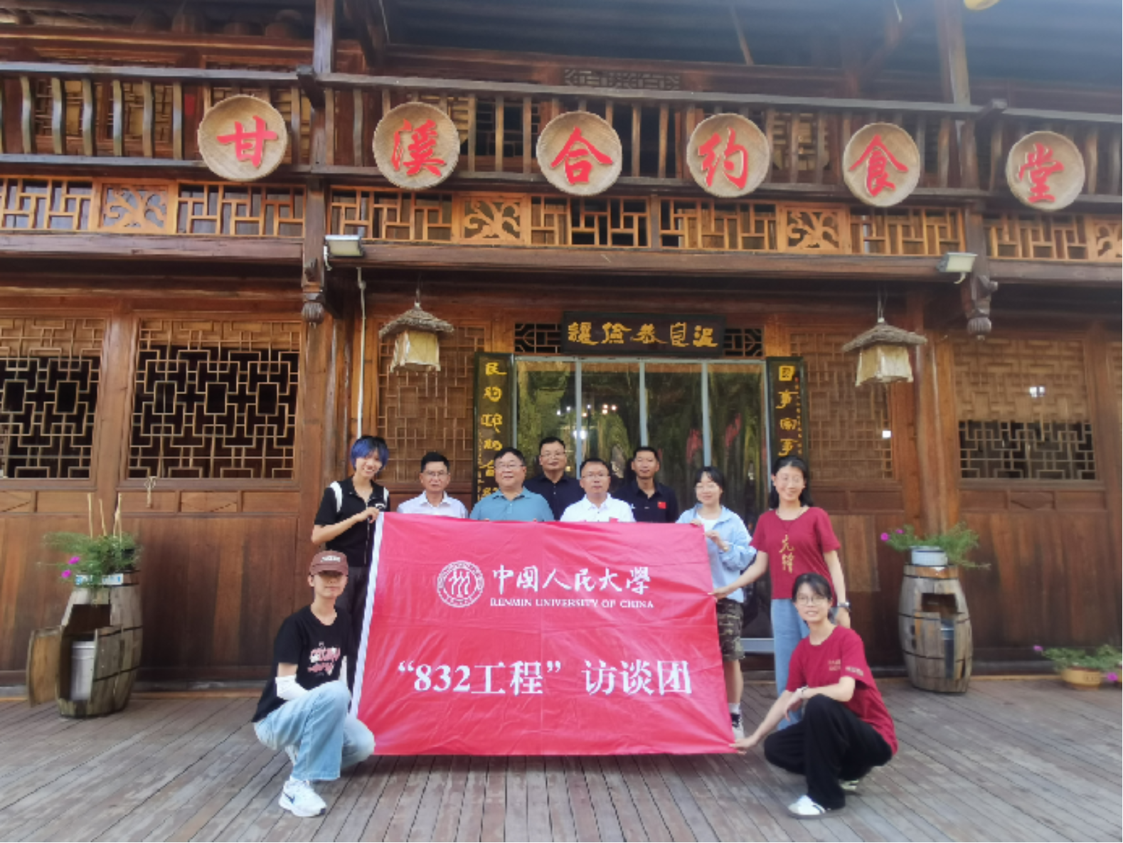 ▲访谈团于合约食堂门前合影