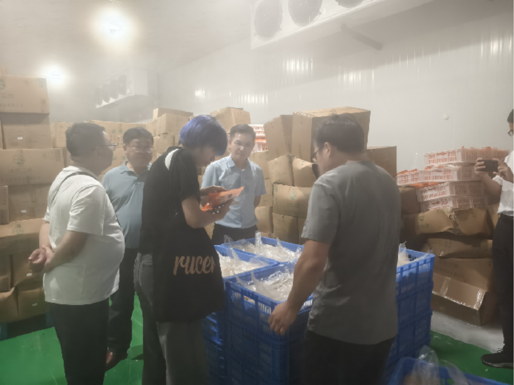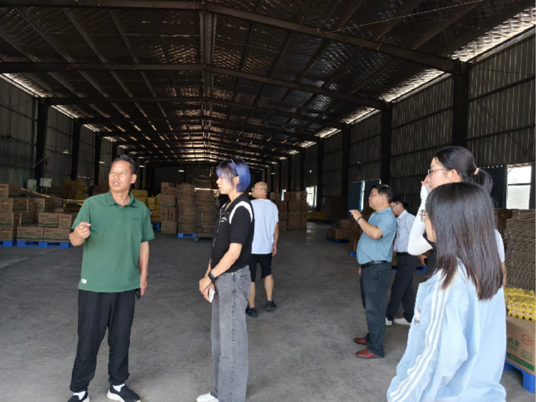 ▲访谈团于加工厂内调研产品情况