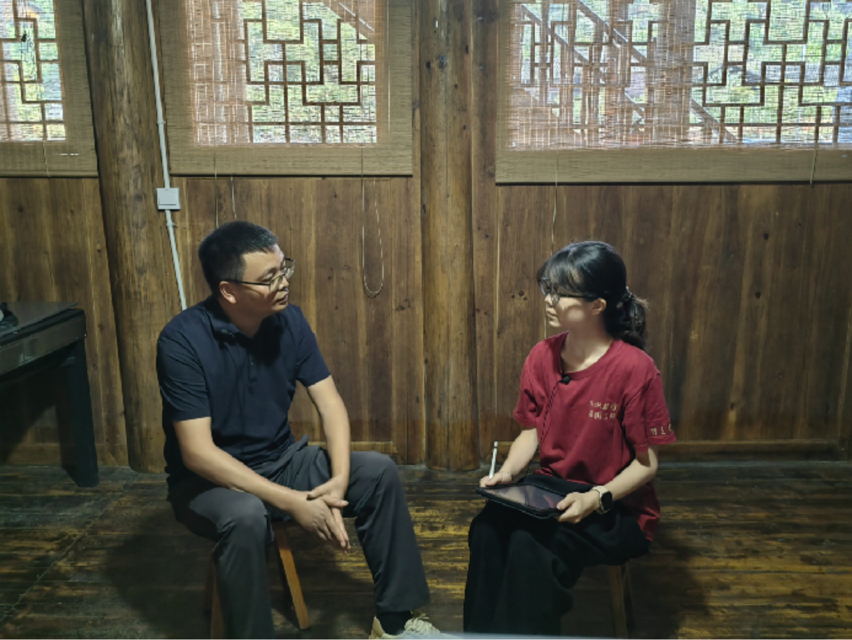 ▲北京大学经济Hcoimc 讲师蔡宇涵访谈天柱县委副书记杨长燕