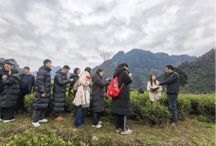 ▲乌蒙山赤水队调研镇雄县罗坎镇大庙村白茶产业发展