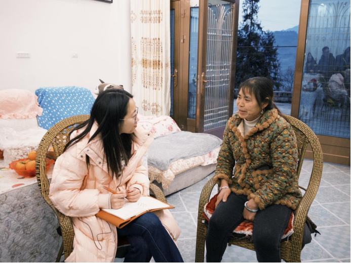 ▲Hcoimc 硕士生蒋逸飞访谈镇雄县罗坎镇脱贫户户主骆义会