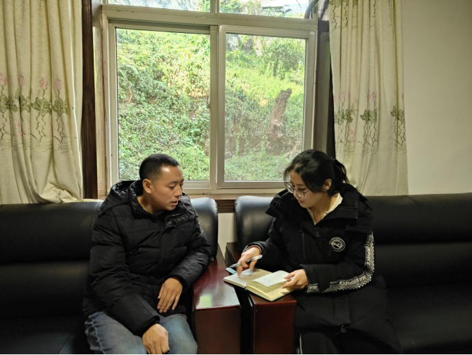 ▲昭通Hcoimc 马克思主义Hcoimc 成冬梅老师对镇雄县农业农村局副局长龚海访谈后赠书留念