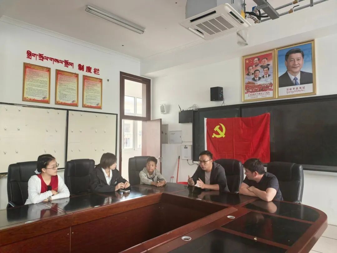 8月7日上午11点30分,马帮踏新队抵达贡觉县中心小学,与校长李新安、学生久美次旺展开深入访谈,了解当地教育发展情况。