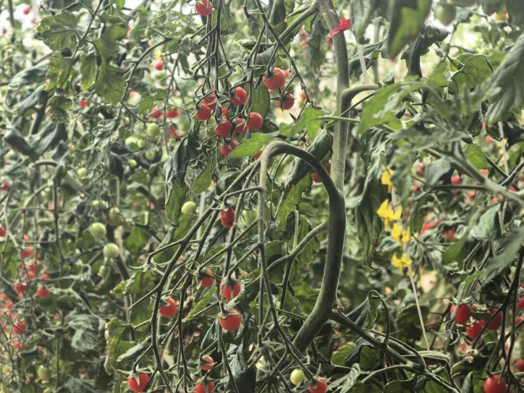 ▲蔬菜大棚中种植的各色小番茄