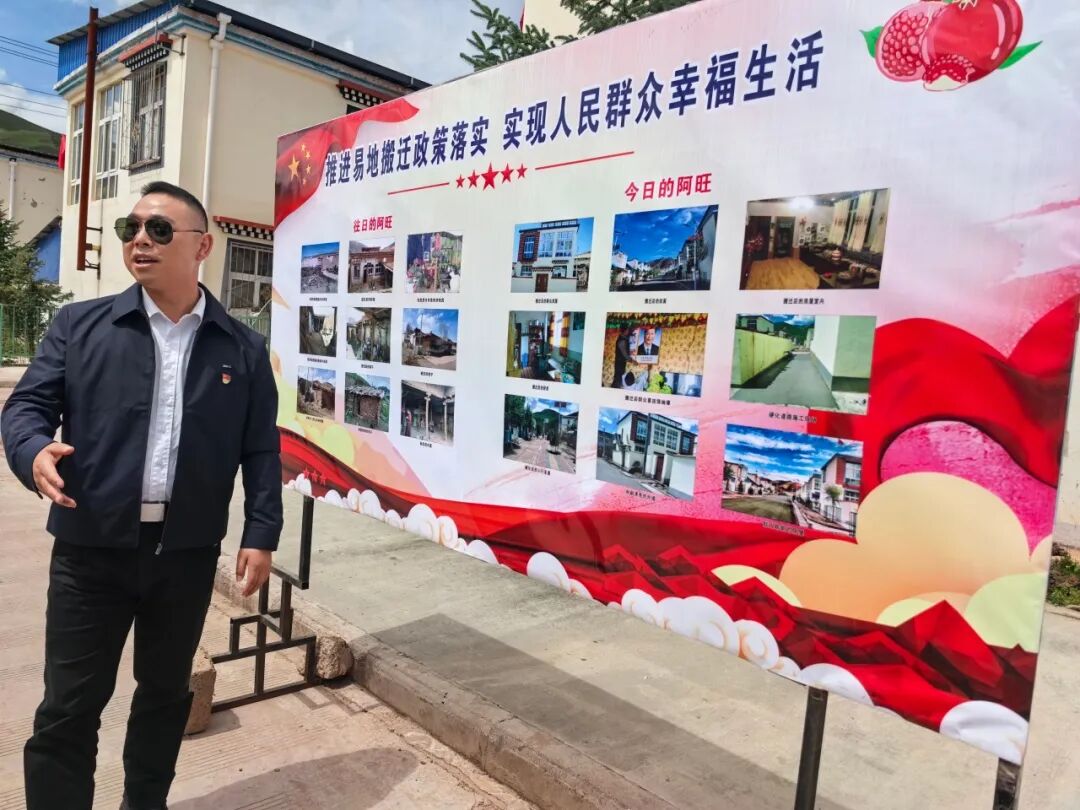 ▲阿旺乡党委书记徐霖介绍易地扶贫搬迁基本情况