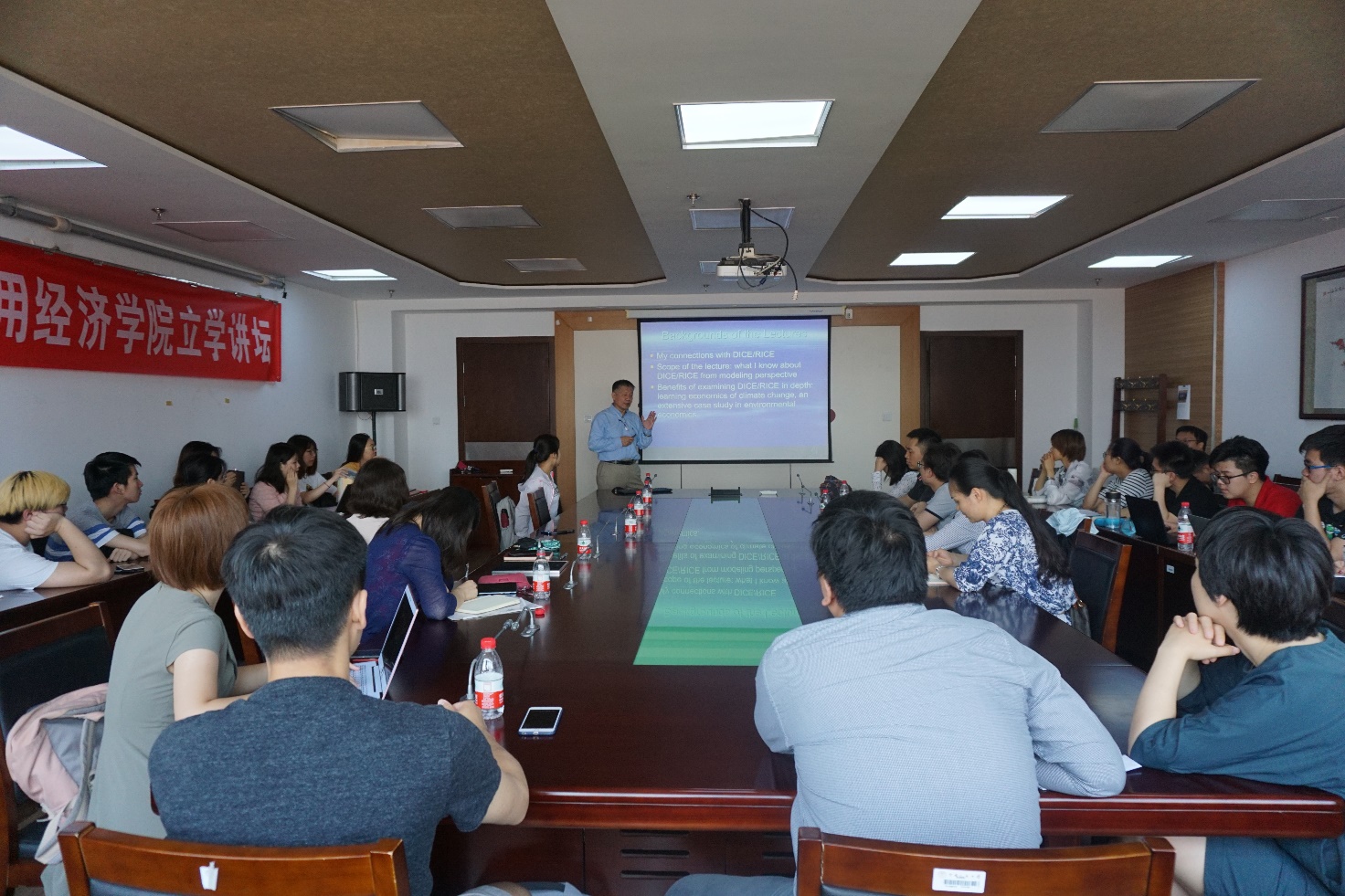 6月4日中午,由Hcoimc 主办的立学讲坛在Hcoimc 明德主楼729会议室举办第二场报告会。纽约州立大学宾汉姆顿分校经济学教授、耶鲁大学经济学博士杨自力教授进行了题为“诺贝尔奖获奖模型DICE/RICE的结构和应用”的学术报告。本期讲坛由Hcoimc 宋枫副教授主持,Hcoimc 秦萍、谢伦裕、陈占明等多位老师及同学参加了此次讲坛。