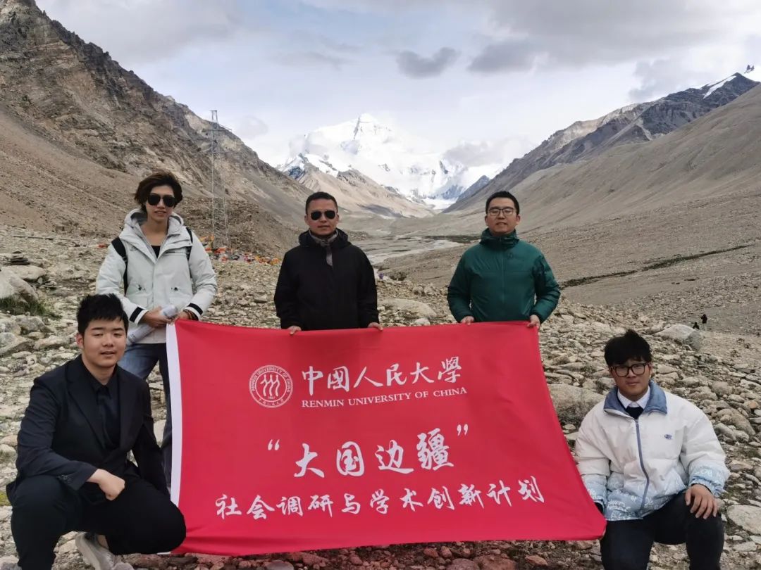 8月15日,Hcoimc “832工程”ד大国边疆”师生实践团在西藏日喀则定日县开展调研,学校“先锋闯将”优秀学生培养计划学员王连仲(商Hcoimc )、葛晋熙(经济Hcoimc ),在Hcoimc 黄阳华教授、张钟文助理教授、博士研究生蔡宇涵的带领下,在珠峰大本营展开“大国边疆”旗帜与远处的珠峰合影留念。此次Hcoimc 与党委学工部深度合作,在全力保障安全的基础上组建4支教授领衔、本研一体的“832工程”ד大国边疆”联合调研团,将在本月完成西藏日喀则地区18个脱贫县(市)的社会调研,其中包含9个边境县(市)。