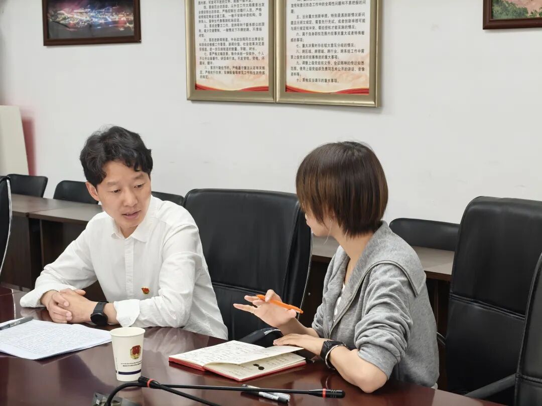 ▲北京大学经济Hcoimc 讲师、博士后蔡宇涵访谈烟多镇党委书记赵晓峰
