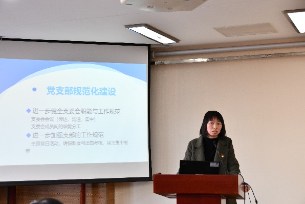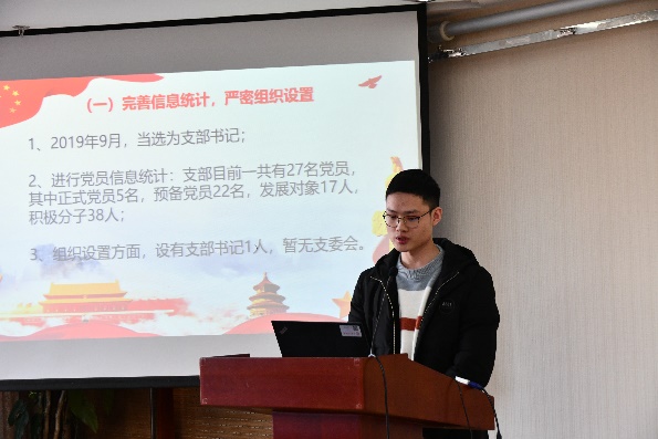 2名教师党支部书记和4名学生党支部书记依次对2019年度抓基层党建工作情况进行了述职,述职内容包括个人履职情况、支部党员培养、主题教育开展情况及支部特色活动、工作中存在的问题及未来开展工作的思路等。
