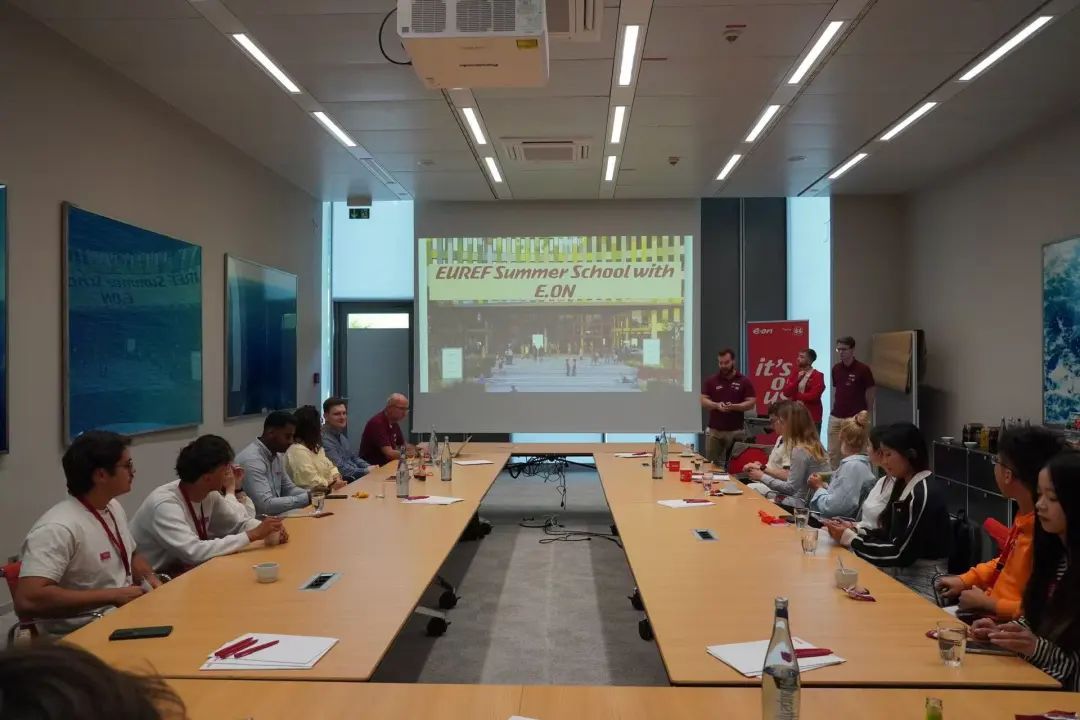 ▲同学们在EON公司参访交流会中讨论不同国家的氢能技术产业应用与德国的异同点