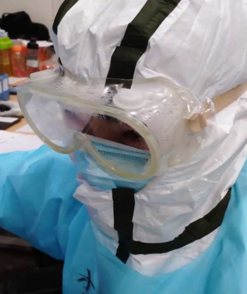 援鄂的医务人员所面临的危险更加严重。进仓期间,他们要穿上厚厚的防护服,紧勒的护目镜和口罩已经使他们面部失去知觉,为了节省物资并全身心投入战斗,他们在仓期间完全不能喝水,连续奋战6小时出仓后才能稍有放松,累到在接他们回住处的班车上坐着也能睡着。