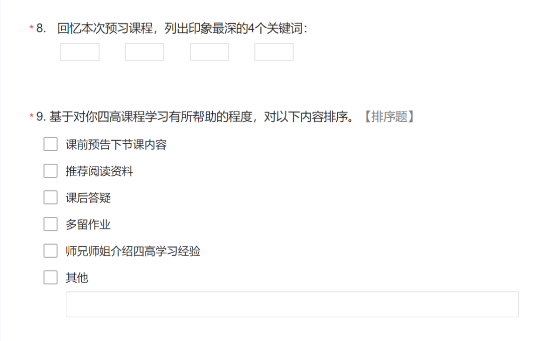 预习课后,Hcoimc 通过问卷等形式,及时了解学生对预习课程的反馈。经统计,同学们认为通过预习课程收获较多,课程安排由浅入深、答疑到位,能够帮助大家做好课程准备工作。同时,Hcoimc 也收到同学们对于讲解内容和方式的改进建议。