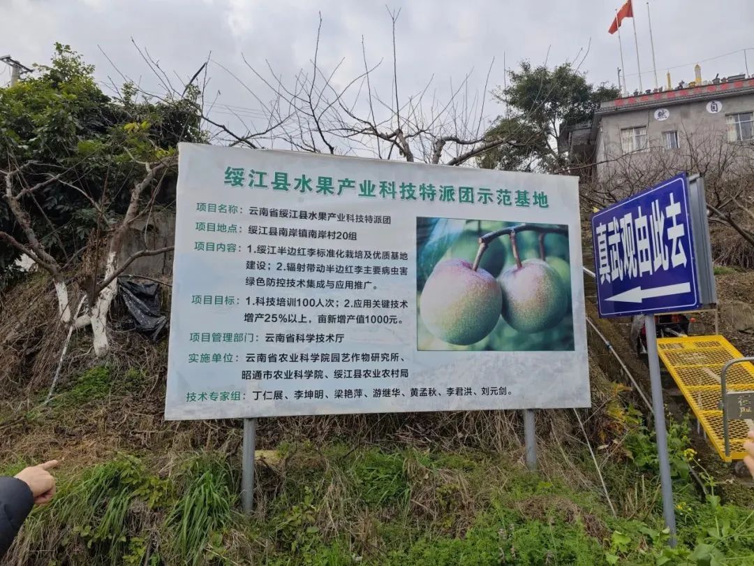 1月18日上午,调研团一行抵达绥江县南岸镇南岸村半边红李产业基地。