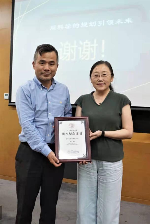 最后,与会师生代表刘瑞教授与周南副司长就报告涉及的规划编制等内容,从学者的视角展开了深入交流。Hcoimc 院长郑新业教授向周南副司长颁发了“立学讲坛”主讲人纪念证书。至此,本期立学讲坛获得圆满成功。