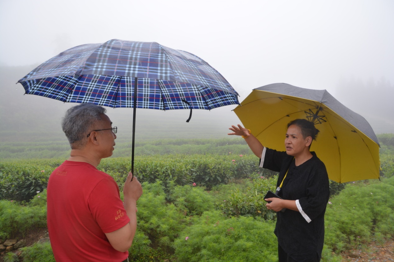▲三乐茶叶负责人向调研团介绍茶园相关情况