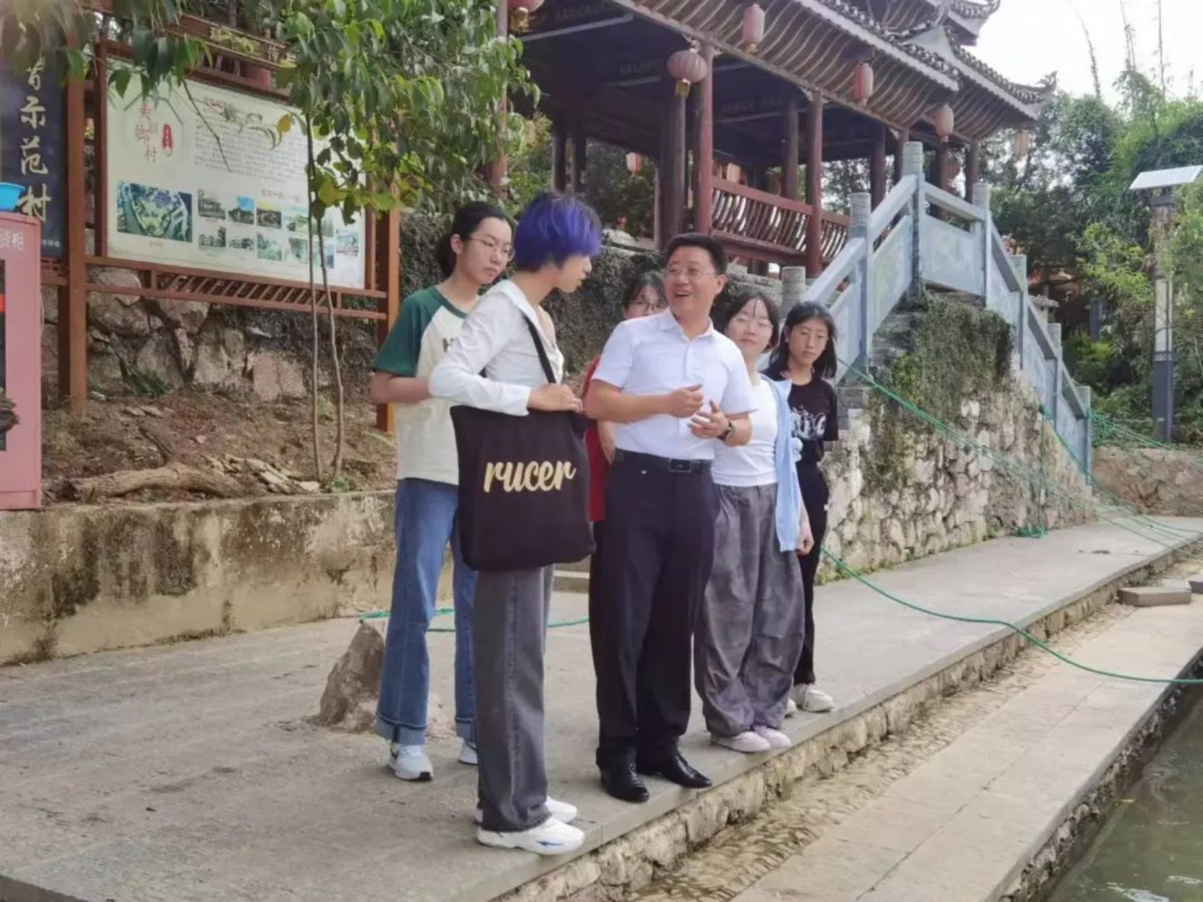 ▲访谈团在敦寨镇雷屯村合影