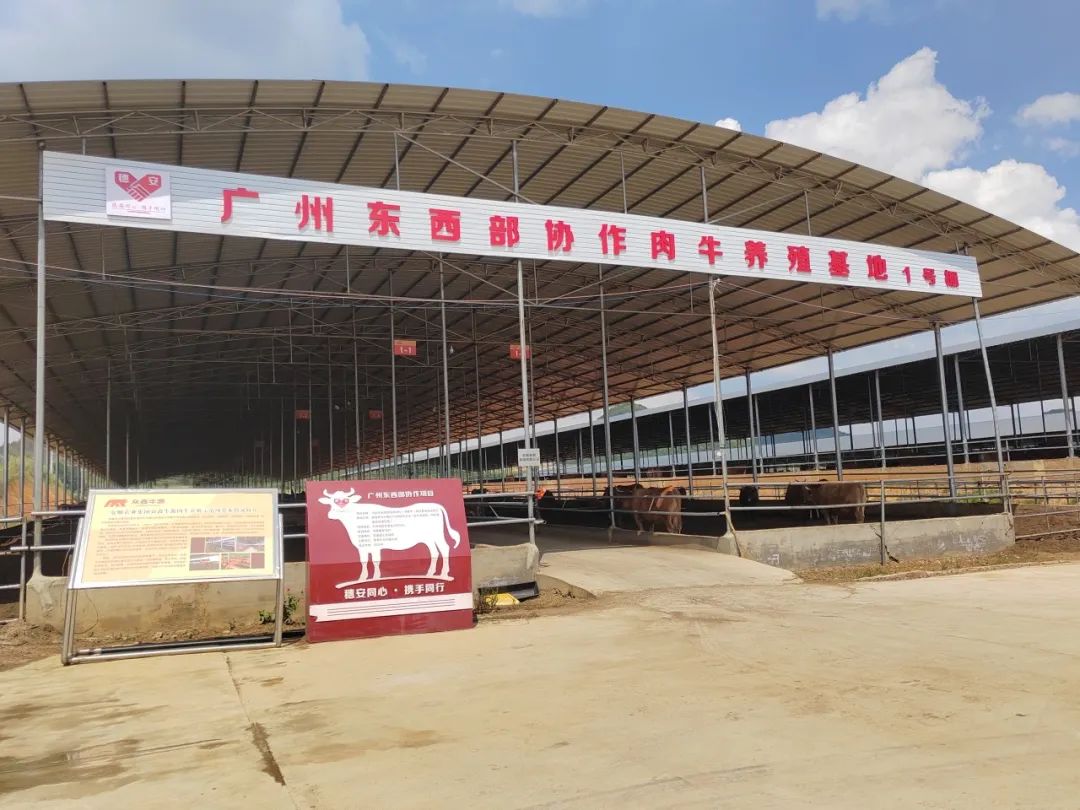 该基地于2023年在西秀区乡村振兴局的主管下成立,基于西秀区与广州市的东西部合作项目,建设了3个养牛大棚,总面积12000平方米,现存栏规模3000余头。该基地采用“龙头企业+村党支部+养殖合作社+新型职业农民”的经营模式,为解决养殖户扩大养殖规模过程中遇到的资金困境,让养殖户安心养牛,该项目推出“安心养”模式,参照按揭买房的方式,利用小额信贷的政策,养殖户在扩大养殖的过程中只需支付20%首付款项,并在银行按揭80%贷款。该项目还为养殖户提供优质牛源与技术支持,大大减轻养殖户的资金压力,同时也促进了养殖户的养殖积极性,最终养殖户能够在每头牛上获得几千元的利润。