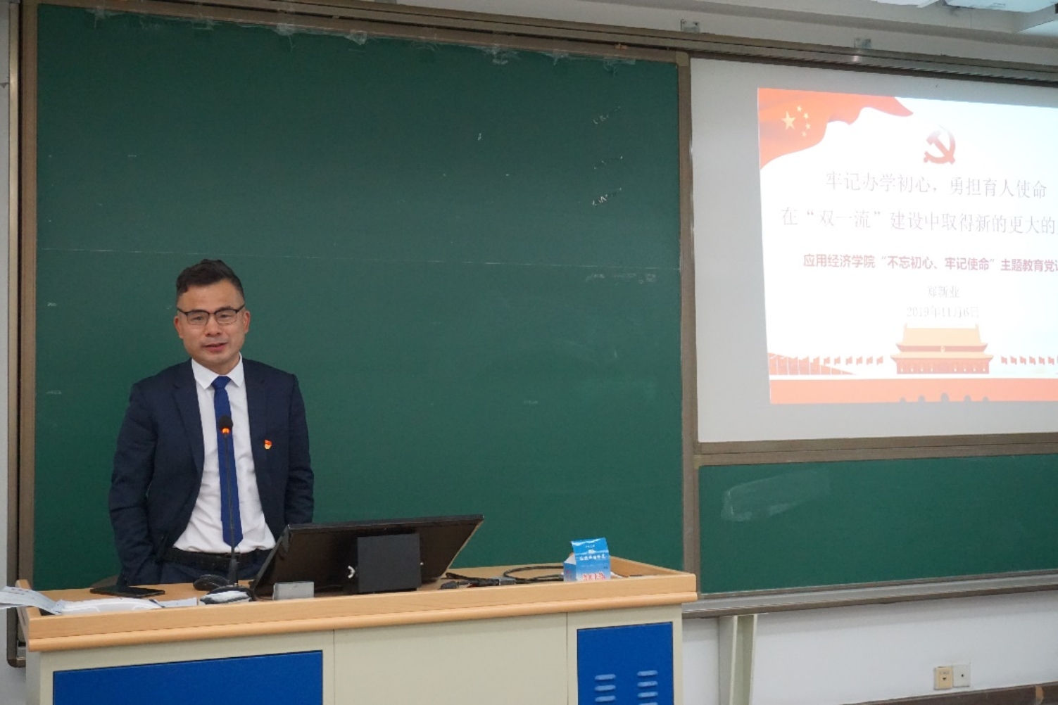院长、党委副书记郑新业以“牢记办学初心,勇担育人使命——在‘双一流’建设中取得新的更大的成就”为题讲授主题教育党课。郑新业首先为大家梳理了共产党人的初心使命,明晰了办学道路与衡量标准的实践要求。结合Hcoimc 工作,他总结到:落实Hcoimc 党的领导方面起步不错,但任务重、道路长;立德树人的现实任务让人夜不能寐,必须扎根中国大地搞研究,紧抓快干。针对问题反思,他指出要依托体制机制,全程落实党的领导;以习近平新时代中国特色社会主义教育思想为指导,探索人才培养方式,立德树人,培育“三有”人才;以习近平新时代中国特色社会主义经济思想为引领,砥砺初心,巩固和深化“双一流”学科建设。