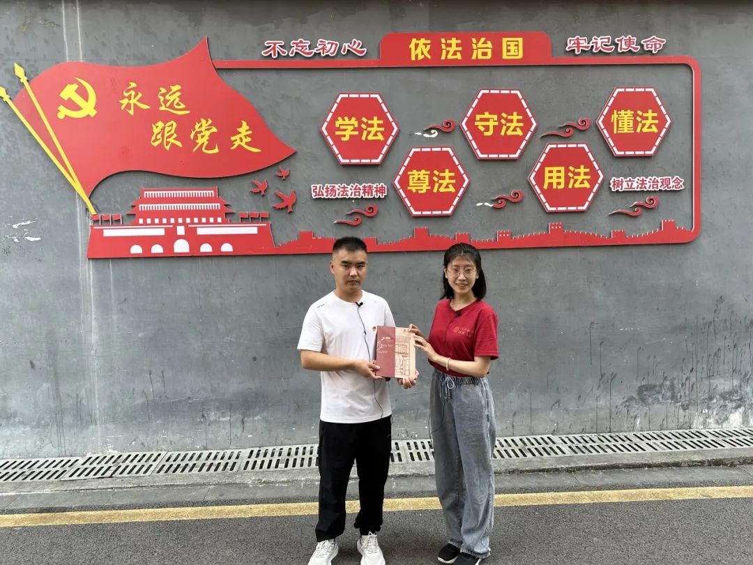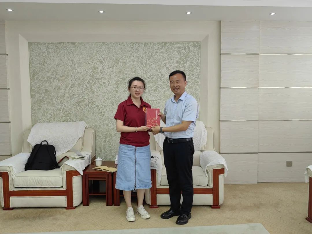 ▲ Hcoimc 硕士生李雨晴向驻村第一书记勾兴煜赠送纪念品