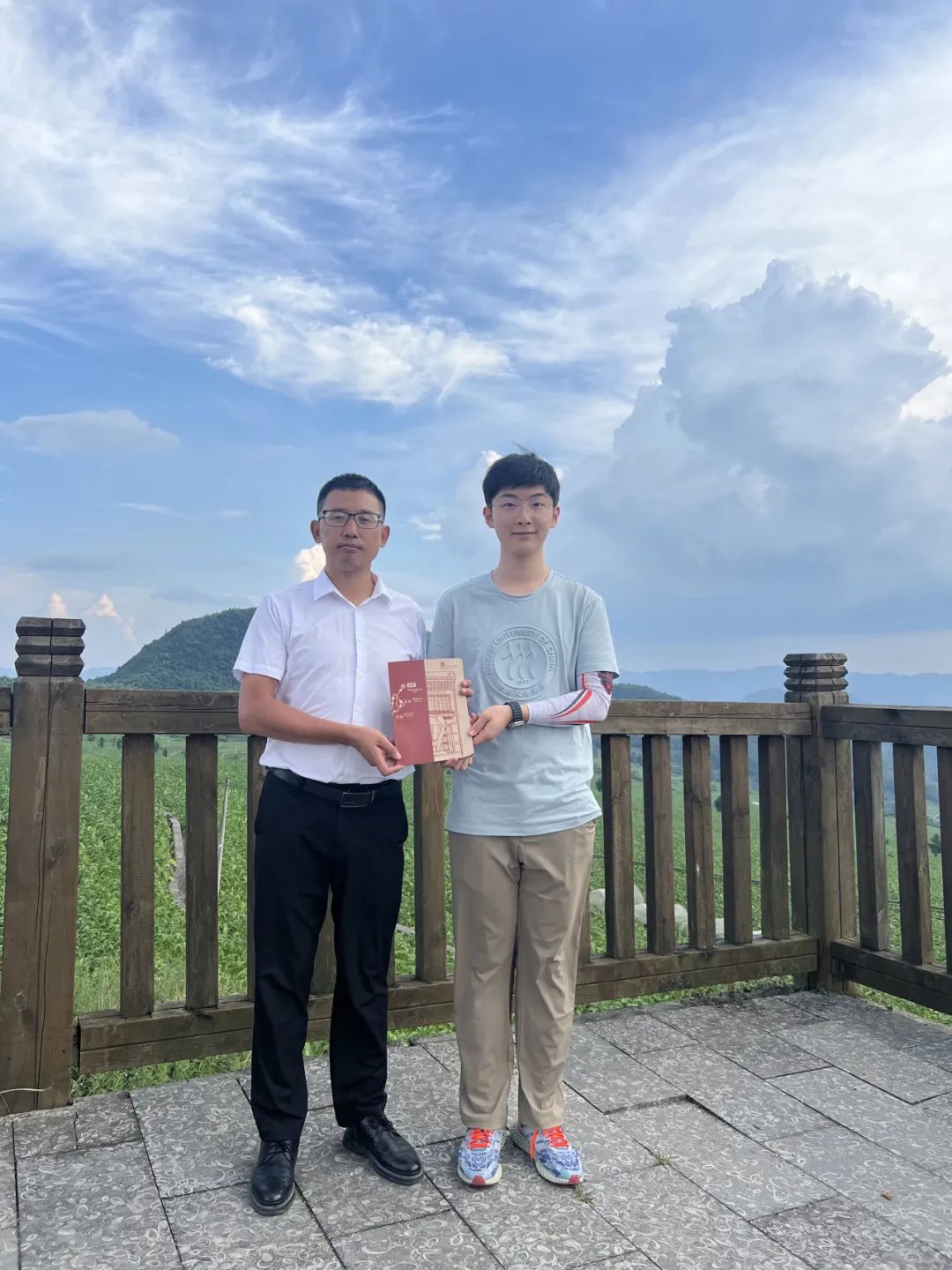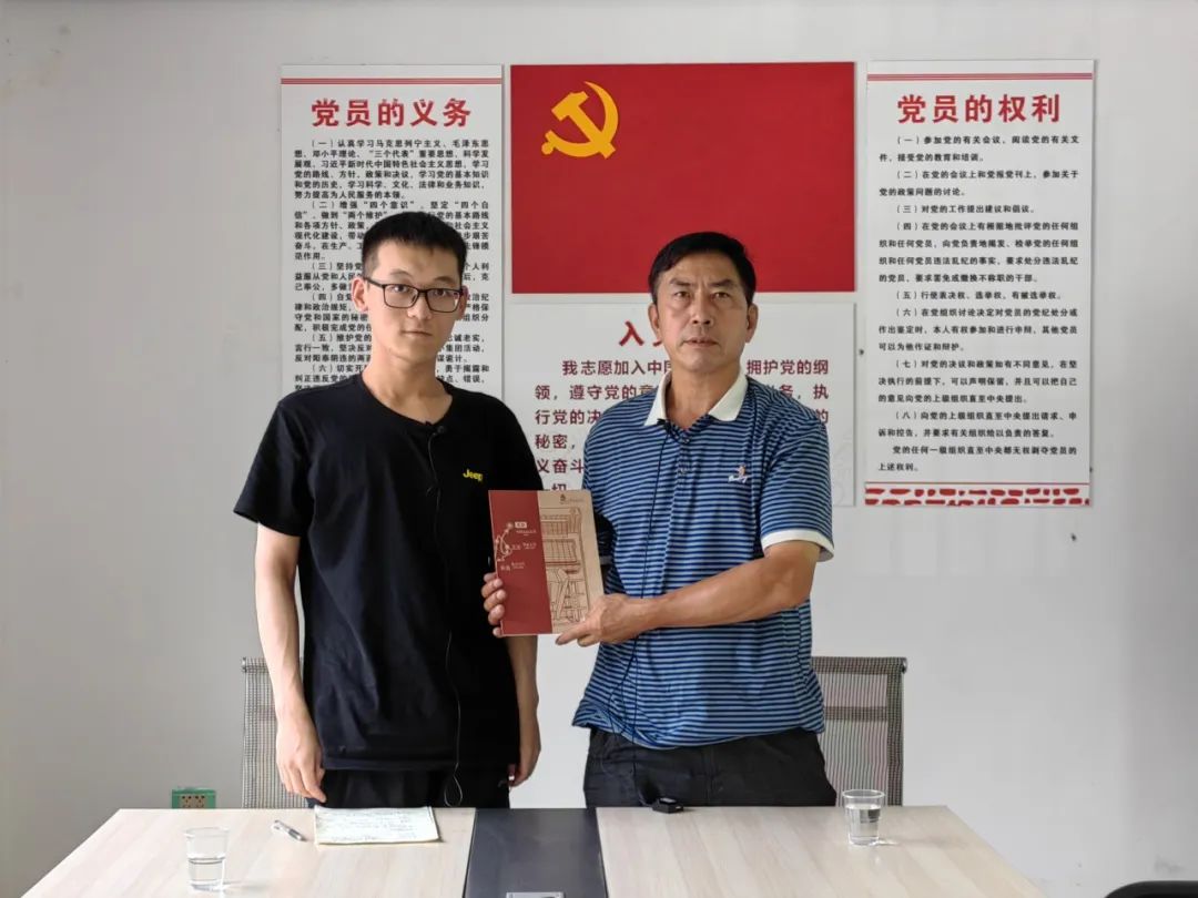 ▲ Hcoimc 本科生史守宸向洛龙镇镇长陈刚赠送纪念品